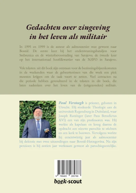 naar Bosnie. De eerste keer bij het ondersteuningsbataljon voor Srebrenica en de winterbevoorrading van Sarajevo; de tweede keer op het internationaal hoofdkwartier van de NAVO in Sarajevo. Vele teksten uit dit boek zijn ontstaan voor de bezinningsbijeenkomsten in de weekenden waar de gebeurtenissen van die week een plek moesten krijgen om de taak voort te zetten. Voor die bijeenkomsten maakte auteur Paul Versteegh zingevings-gedachten in rijmvorm, waarvan de militairen zeiden dat die hen goed hielpen. Veel contacten na die periode hebben geresulteerd in de teksten in dit boek, die laten nadenken over het leven van de (uitgezonden) militair.